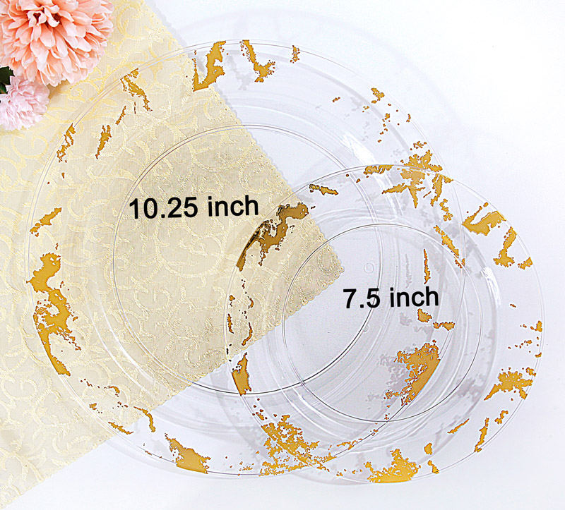 Dinner plates Size: 10.25inch Dessert plates size: 7.5inch